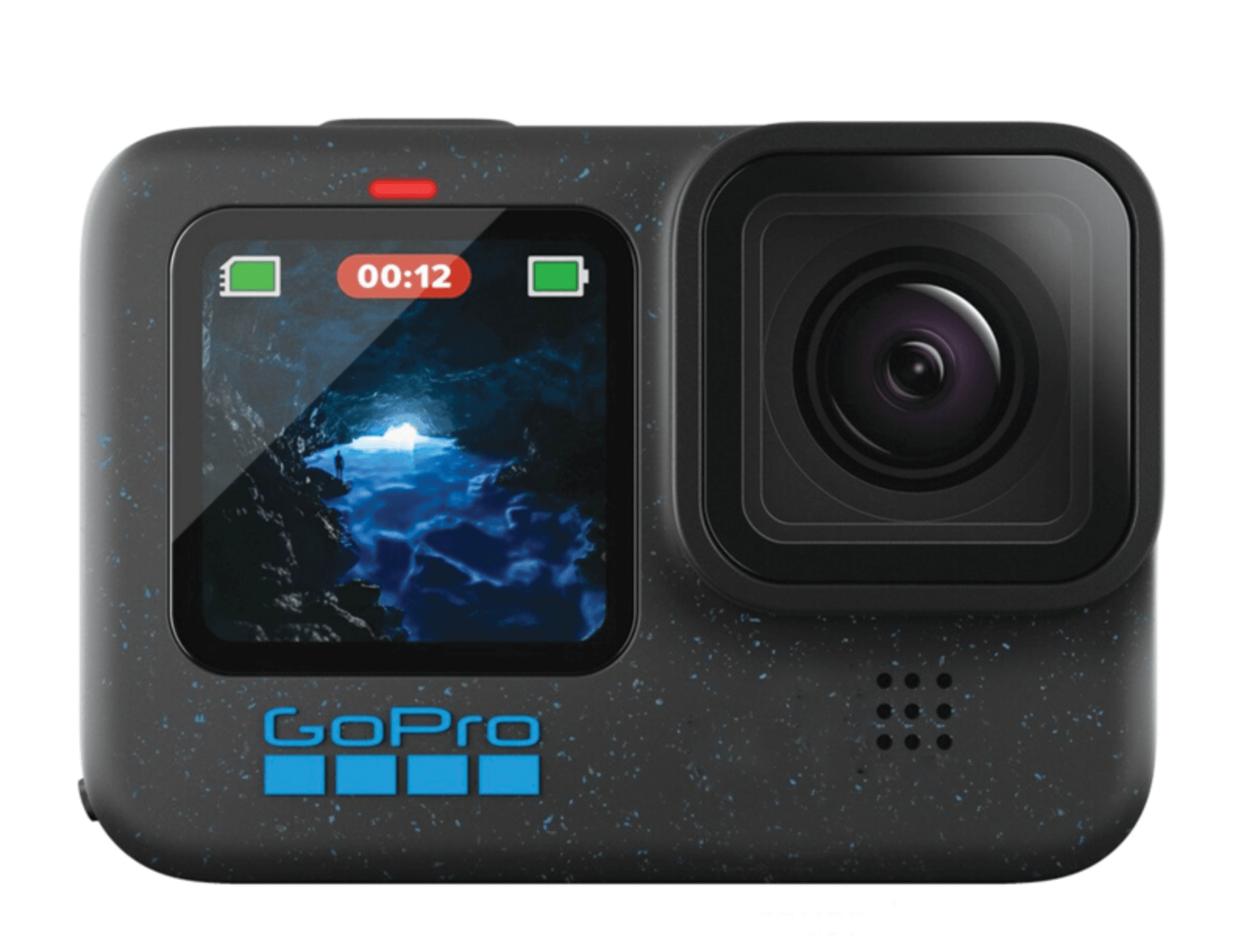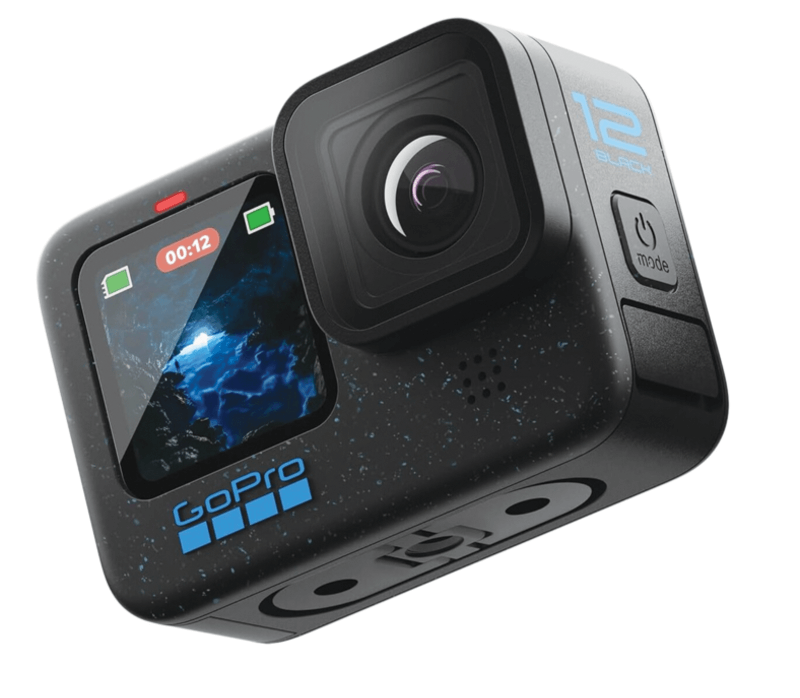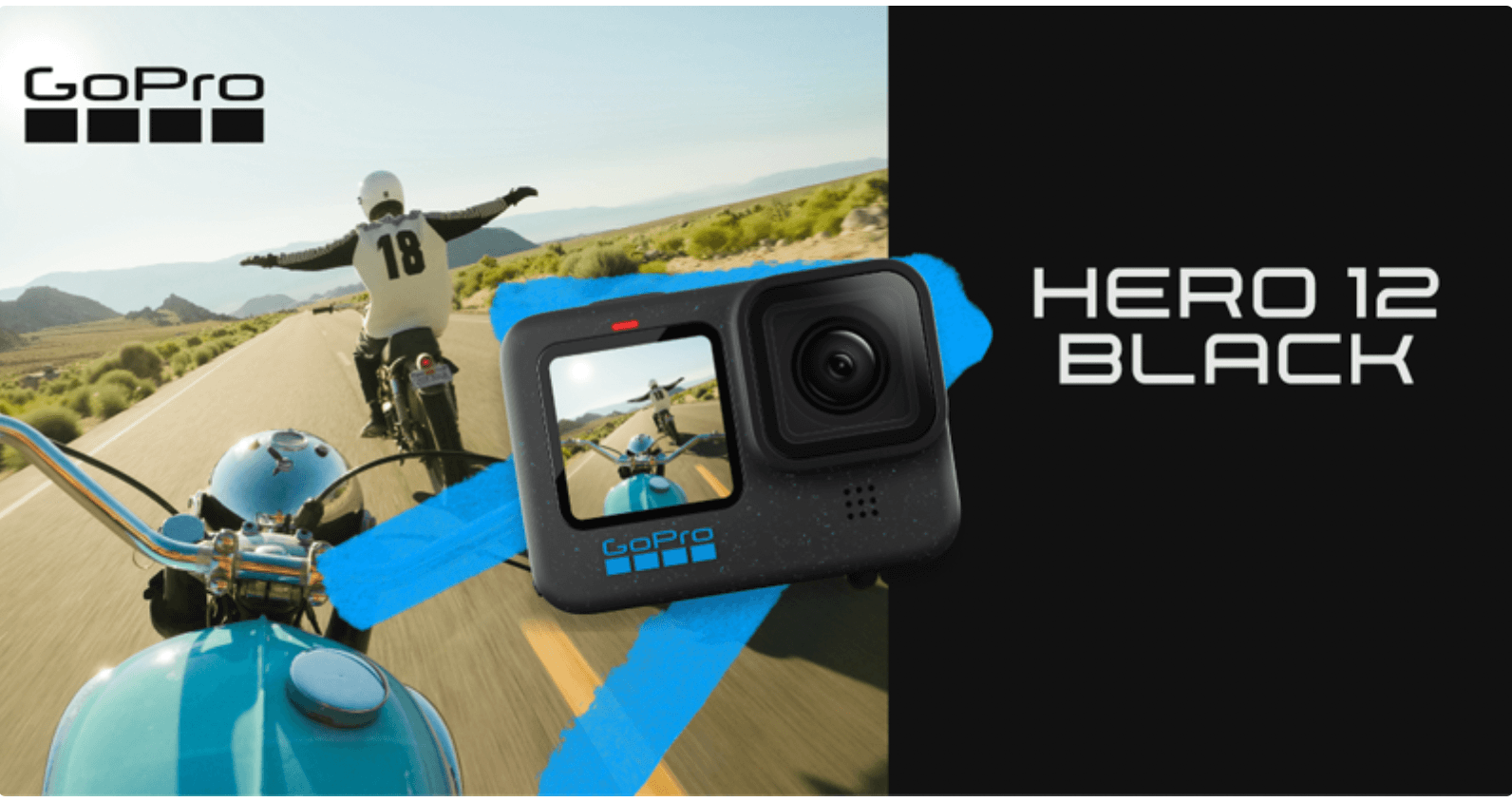 | Includes HERO12 Black camera, Enduro Rechargeable Battery, curved adhesive mount, mounting buckle + thumb screw, and USB-C cable |