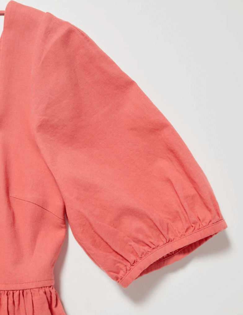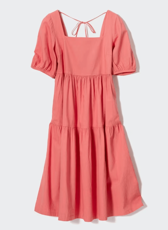 Uniqlo Linen Blend Volume Sleeve Shirring Dress